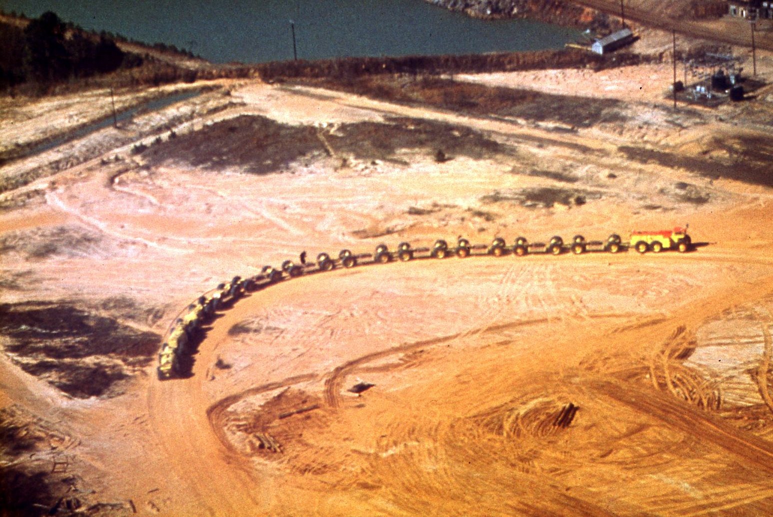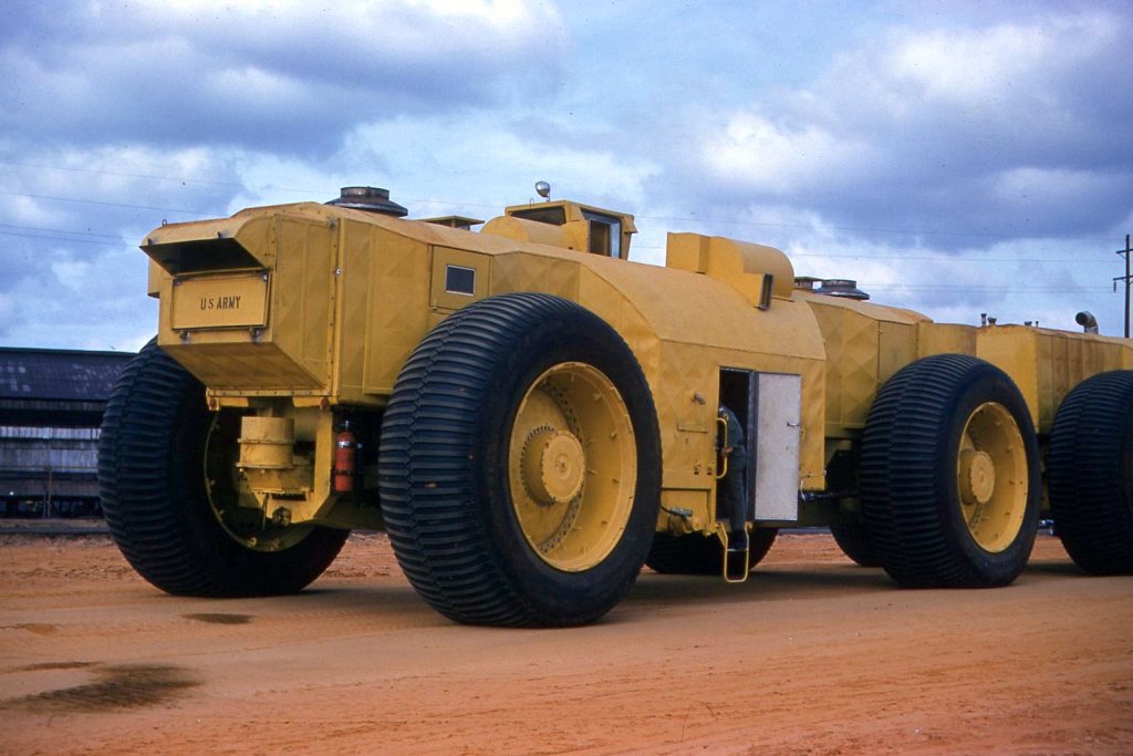 The Overland Train Mark II concept began in 1955. While the Mark II was the last of the Overland Trains to be built, it had the longest history. R.G. LeTourneau, Inc. would not see a purchase order for the Mark II until 1958. The images below show the Mark II on the test track at R.G. LeTourneau, Inc. in Longview, TX in 1961. Once the Army accepted the Mark II in Texas, it was sent by rail to Yuma Proving Ground in Arizona in April, 1962. This is where the real machine testing would occur. Today, the Mark II Control Car, the lead car, sits at the Yuma Proving Ground Heritage Center – https://history.army.mil/museums/IMCOM/yumaProvingGround/index.html.