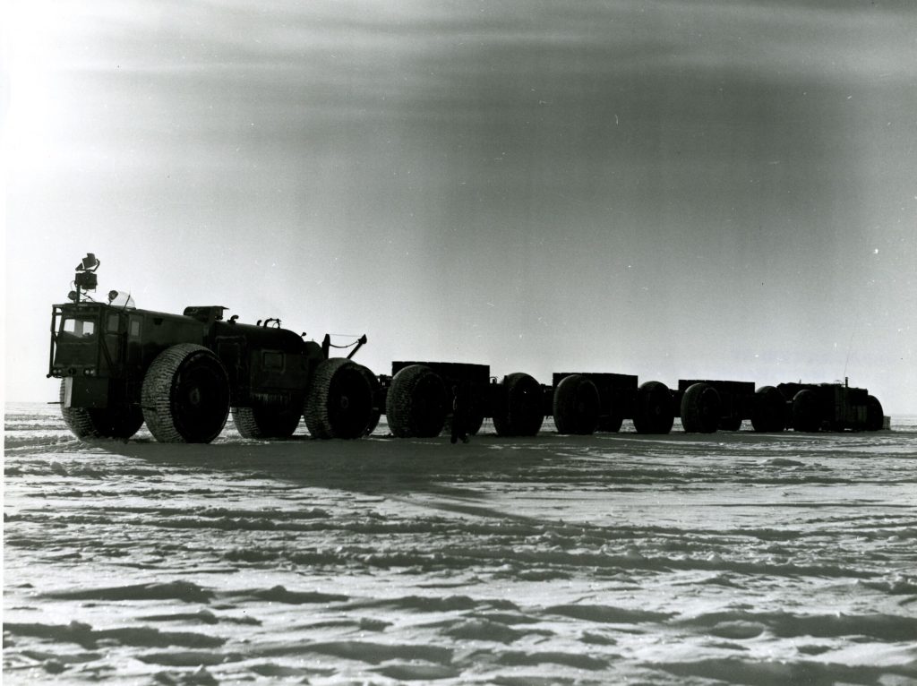 When the United States Army decided to sell the Sno-Train as surplus, it came with a parts inventory valued at $20,000, description, technical capabilities, and images. All of this were listed on the Army form “Sale of Government Property: Item Bid Page.” One of the images that came with the Sno-Train was of the Cummins VT-12 diesel engine, seen below. The Cummins produced 600 horsepower. The engine was coupled with an A/C and D/C generator to power The Electric Drive (wheel motors and drivers (mechanical gears)), interior cab lights, exterior lighting, winch, and job crane. The Sno-Train was sold as surplus from the Fort Wainwright Property Disposal Office. At the time of its sale, it was in working condition.