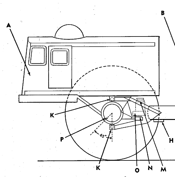 Sno-Train cargo car steering pivot denoted by a “K.” Image: O&M Manual