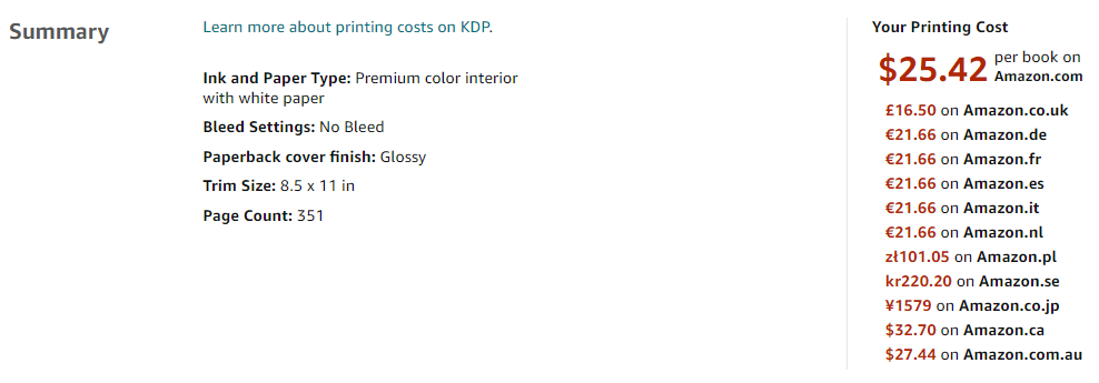 I finished the manuscript for the Overland Trains story this morning. Once I uploaded it to Amazon Kindle Direct Publishing (KDP), it presented me with a printing cost per region.