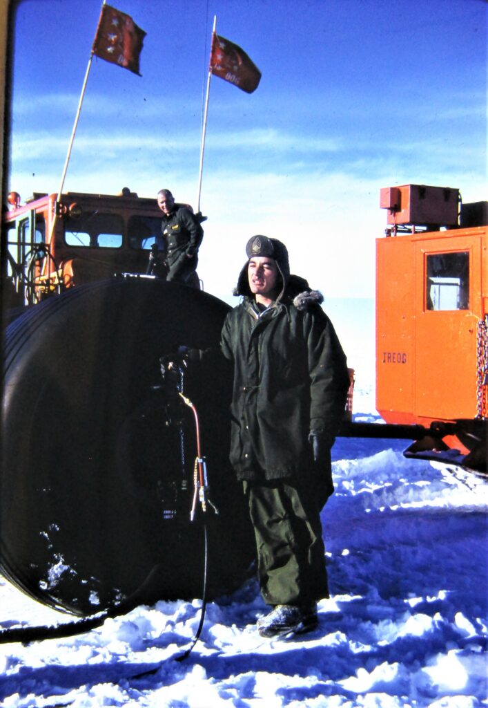 Above: One last image of the Sno-Train in Greenland with Arnold Haynes standing in front of the massive Firestone 120x48x68 tires.