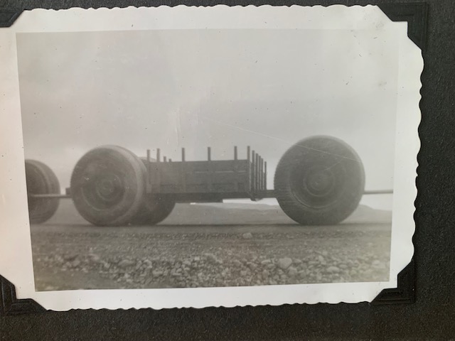 The TC-264 Sno-Buggy spent some time in Greenland testing out the HUGE Firestone 120x48x68s and a few unpowered trailers. It participated in tests as Camp Sierra and was driven by Nate Galbreath. Galbreath was assigned to the 9223rd Transportation Service Unit (Transportation Arctic Group). We know a great deal about the Sno-Buggy and its time in Greenland. During testing, R.L. and R.G. LeTourneau visited the testing areas and received valuable feedback that would eventually shape the Overland Trains we know today. R.L. kept a photo journal with original images and descriptions that very few have seen, which is part of why we have such a rich machine and storyline history.