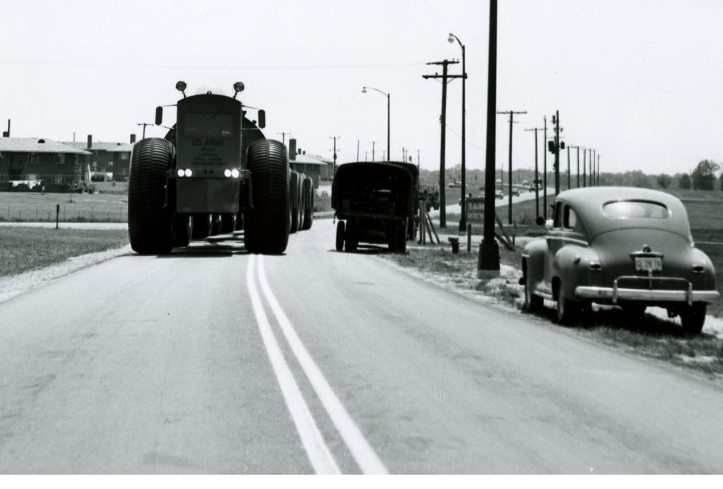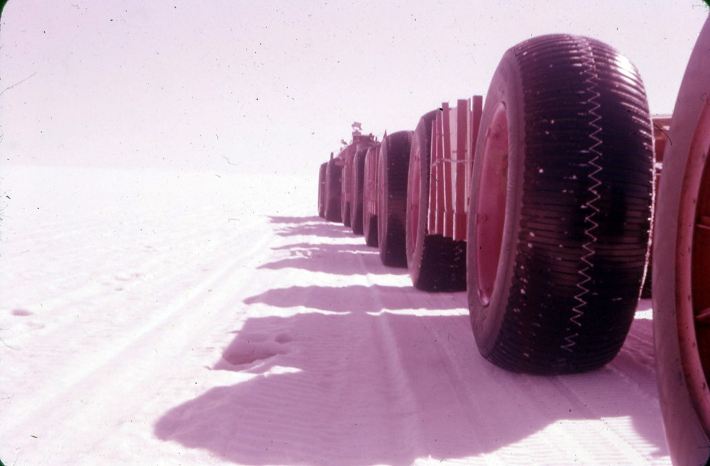 During any scientific, research, or subject matter exploration, understanding the finer details can make or break a project. Observations that seem like minutia can be key puzzle pieces. In the Sno-Train image below, you can just make out a 4th trailer attached to the convoy. If you look closely, you can make out, what appear to be a spoked rim. This trailer is NOT a LeTourneau trailer. I will dedicate an entire chapter in my book to what these trailers and wheels originated and who built them. Until then, enjoy this newly published image.