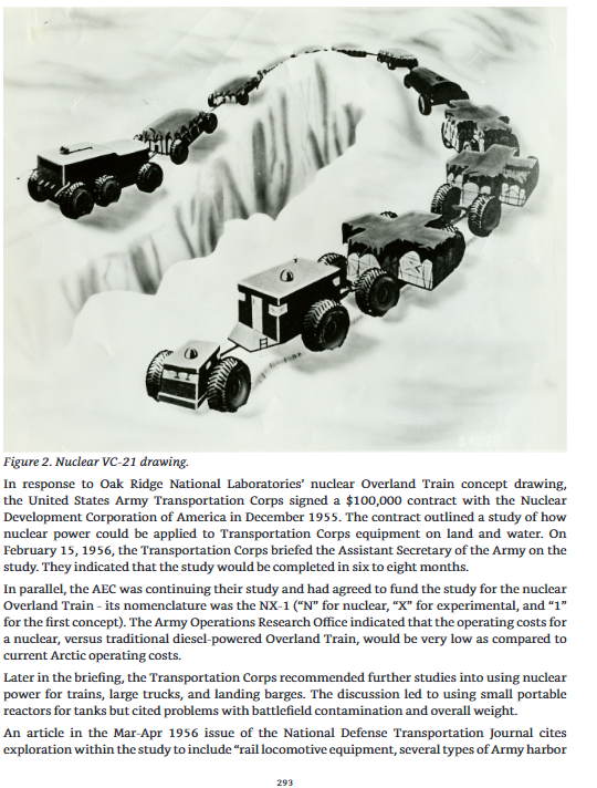 There were three known nuclear powered Overland Trains concepts. I have included two free pages from my book talking about these concepts. enjoy pages 292 and 293 below.