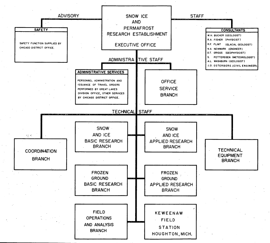 SIPRE began in United States Army Corps of Engineer in 1949. Their job was to “conduct basic and applied research in snow, ice and frozen ground.” As we became more entrenched in establishing a solid presence in Greenland, snow, ice ,and frozen ground research became critical to establishing logistics in and around the region. Researchers within SIPRE heavily participated in developing Camp Century, Greenland.
