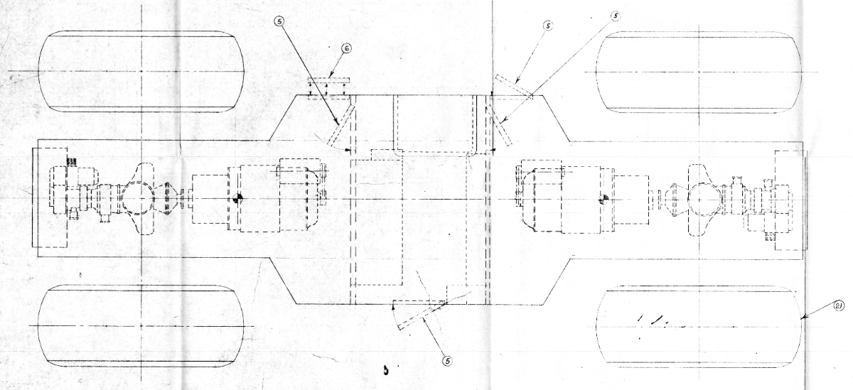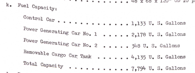 The Overland Train Mark 2 performance standards were proposed in 1958 to R. G. LeTourneau, Inc. Engineers had to work backwards to determine how to best meet the Army’s needs for self support, cargo capacity, and resiliency. In total, the Mark 2 was able to carry 7,794 gallons of fuel. The control car, power generating car number 1 and 2 all had space heaters with 150 gallon tanks, adding on an additional 450 gallons of fuel.