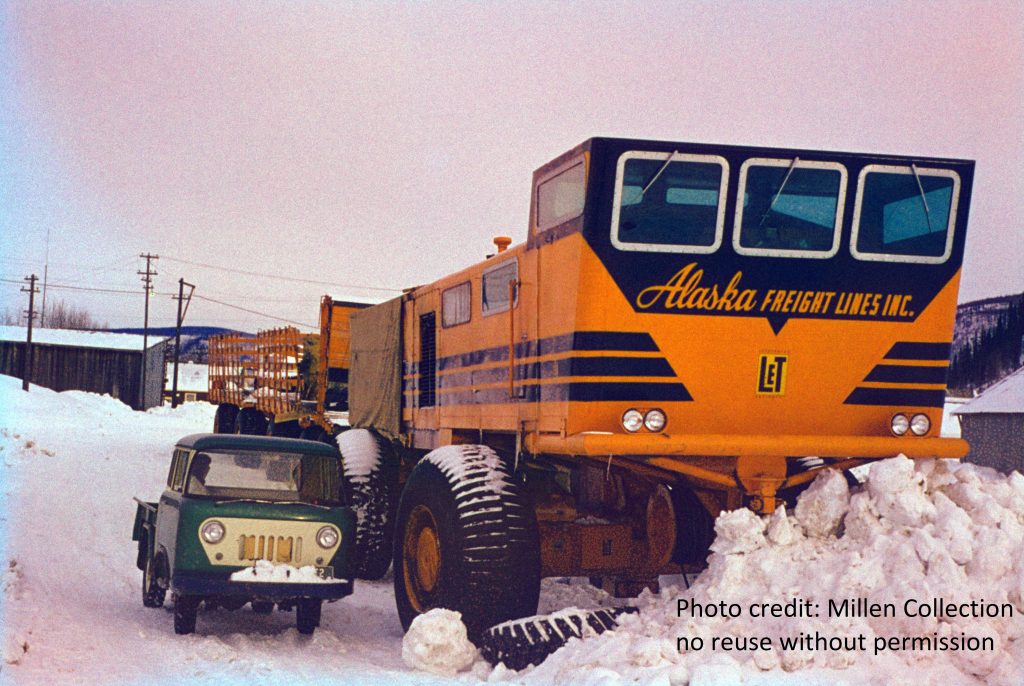 Have you noticed your car, truck, or equipment starts a little slower when it is cold outside? Anyone who lives in or near the Arctic knows that you better have a well maintained battery. When it gets cold, batteries lose efficiency. When the Sno-Freighter came to Alaska to help supply Distant Early Warning (DEW) Line sites, it captured the attention of corporate America. The Sno-Freighter was designed to carry heavy loads through the back country. Companies had the new rugged product comparison that they always wanted.