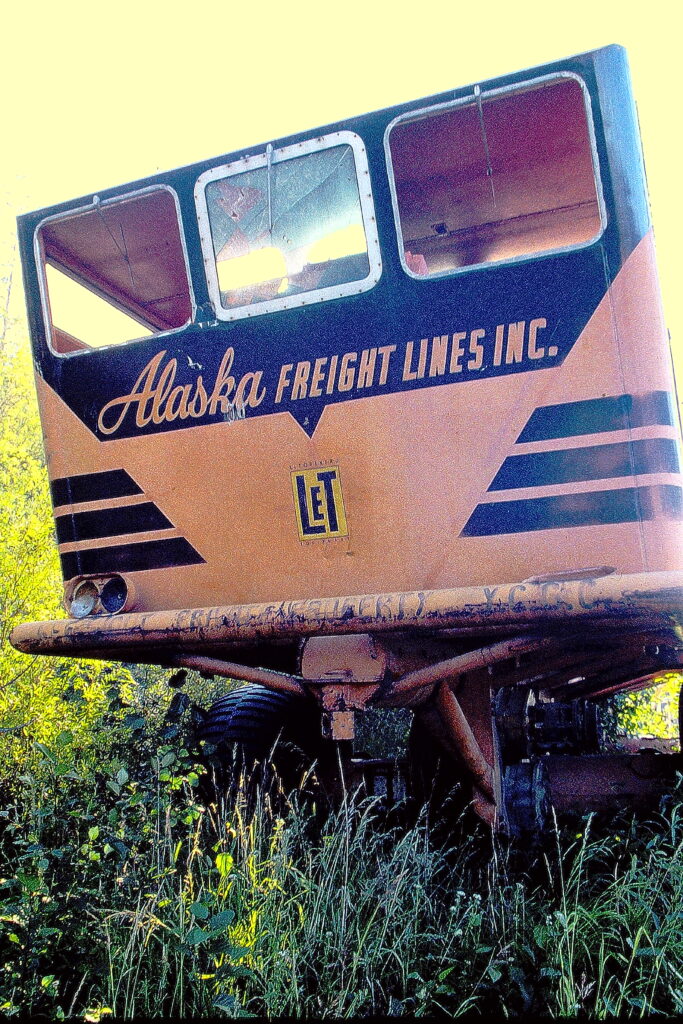 In the spring of 1956, its final supply trip, the Sno-Freighter lost control in the ice and snow and jackknifed. A fire started because of the jackknife, which destroyed it’s ability to transport under it’s own power. Cliff Bishop’s book “18 Wheels North to Alaska: A History of Trucking in Alaska” talks about his efforts to recover the Sno-Freighter from its break down. Fast forward 6 years later.