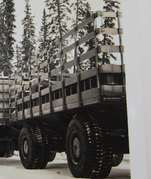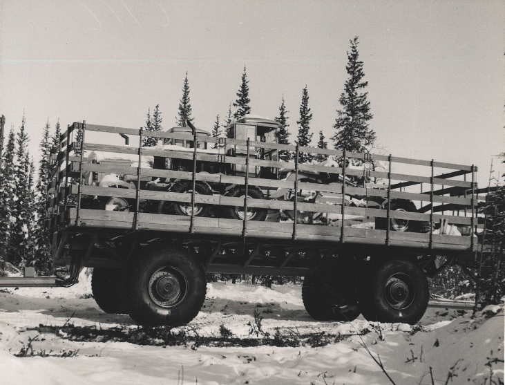 The logs shown in the advertisement above were from the tests at LeTourneau’s Longview, TX facility. Typical cargo for resupplying DEW Line stations were cement, petroleum, oil, and liquids (POL), and a wannigan for housing the men and chef.