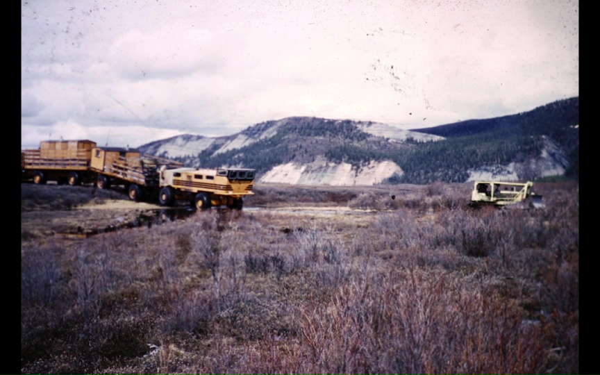 After a number of years of deteriorating in Canada, the government wanted it out of their territory. The United States Army was sent in to recover the Sno-Freighter in 1962. The images below show the Sno-Freighter as it makes its way from the Yukon Territory to Alaska.